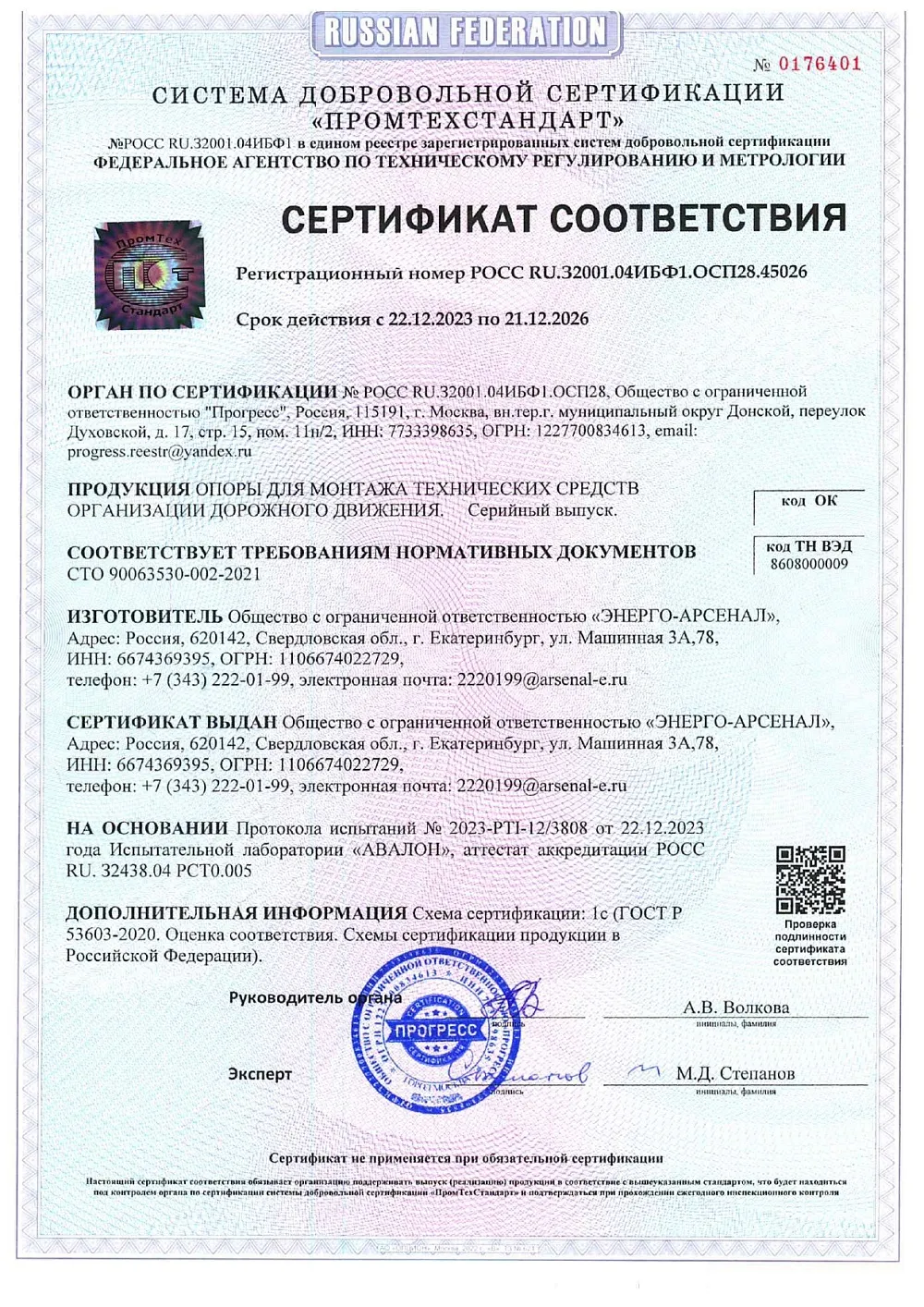 Сертификат соответствия для опор освещения